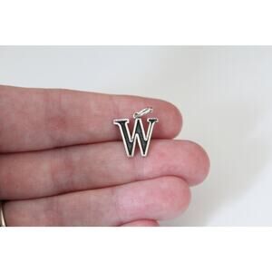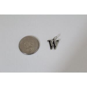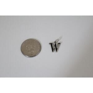 This is a Sterling Silver Uppercase W Initial Pendant. This charm is designed to hang at a slight angle. The oxidized portion of the charm can vary in shade. The black center is sometimes lighter or darker depending on the charm. Both the charm and the chain are made of sterling silver.