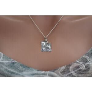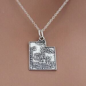 This is a Sterling Silver State of Utah State Charm Necklace. Both the charm and the necklace are Sterling Silver.