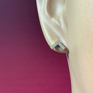 Sterling Silver V shaped stud earrings with clear stones gold tone