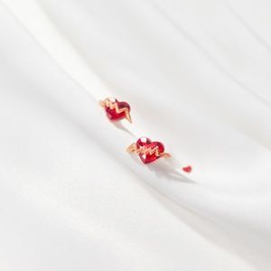Sterling Silver Valentine Heart Earrings - Rose Gold Red Rhinestone Heart Studs
