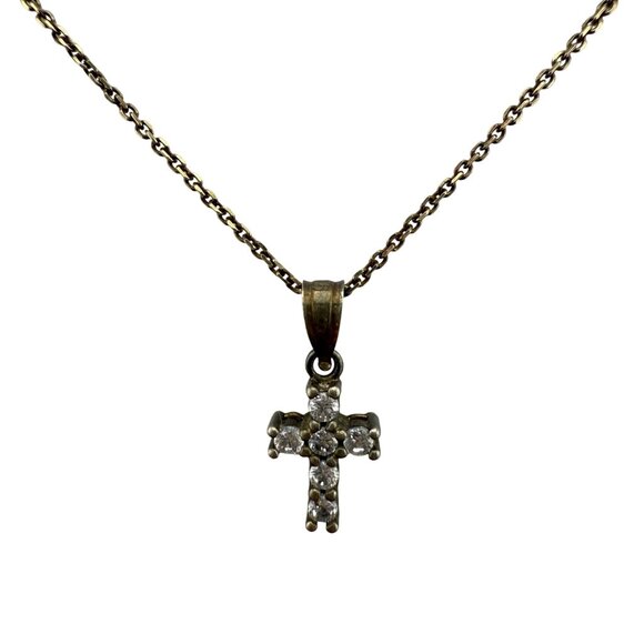 Sterling Silver Vermeil Cross Pendant Necklace With Cubic Zirconia Stones 925 It