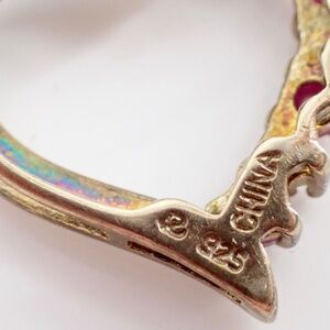 Sterling Silver Vermeil RUBY Heart Pendant Necklace 18” Signed Italy Chain RS Ro