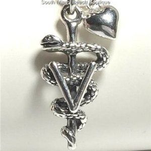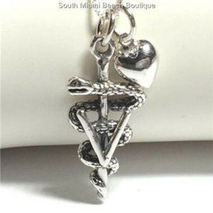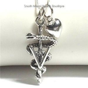 Sterling Silver Veterinarian Caduceus Necklace Doctor Vet Tech Graduation Gift