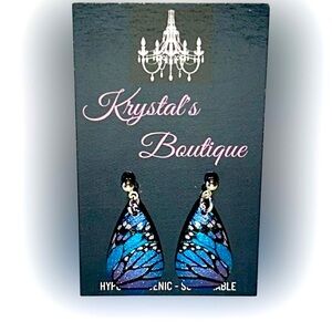 Add a touch of elegance with these stunning new handcrafted sterling silver plated stud blue and purple morpho butterfly wing teardrop earrings. Perfect for any occasion.