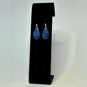 Sterling Silver Vibrant Blue Purple Morpho Butterfly Wing Teardrop Earrings