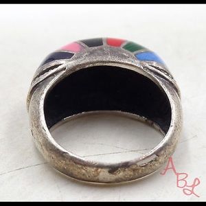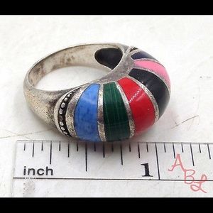 Sterling Silver Vintage 925 Dome Denim Lapis & Onyx Ring Sz 7.75 (9.4g)