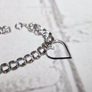 💖 Sterling Silver Vintage Charm Bracelet · 7" · Heart & Bell Charms