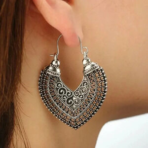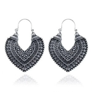 Sterling Silver Vintage Ethnic Boho Hoop Earrings