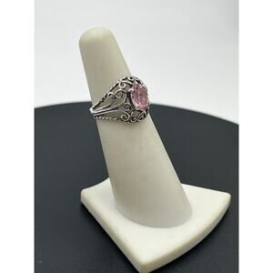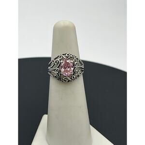 Sterling Silver Oval Pink CZ Filigree Ring Sz 5.25