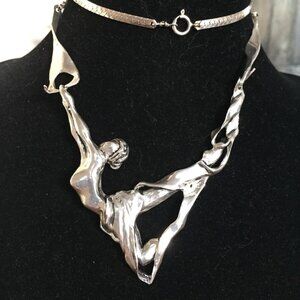 Sterling Silver Vintage Modernist Acrobat Necklace Circus Trapeze Artisan