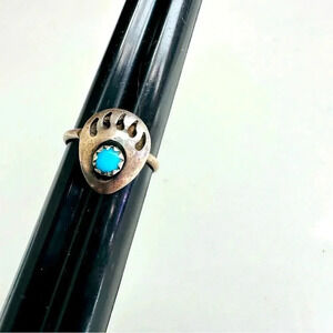 Sterling Silver Vintage Native Bear Claw Turquoise Ring