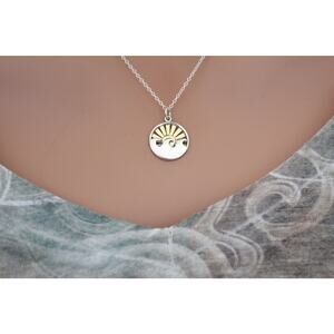 This is a Sterling Silver Wave Charm with Bronze Setting Sun Necklace. Both the charm and the necklace are Sterling Silver. This charm is on an 18 inch chain.
