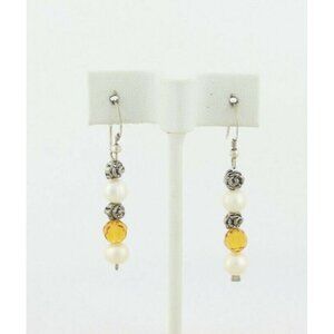 Sterling Silver White and Yellow Pearl and Flower Earrings Dangle Drop Earrings