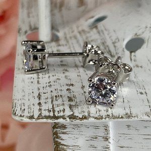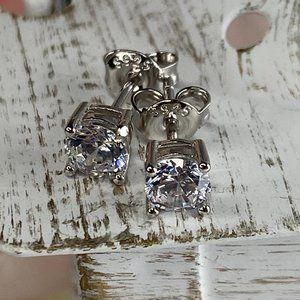 Sterling Silver Woman's 5mm Round Diamond Simulant CZ Stud Earrings