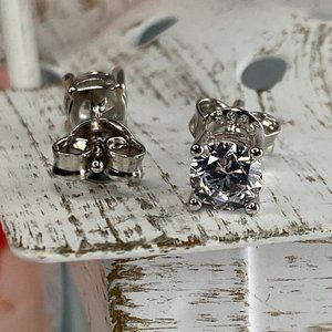 925 Sterling Silver White Vintage Woman's or Men's 5mm White Simulated Diamond Cubic Zirconia CZ Round Stud Earrings with Butterfly Backing