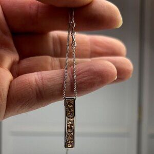 Both the chain and pendant are sterling silver and have the 925 stamp on them. The chain was made in Italy and is 18" long.