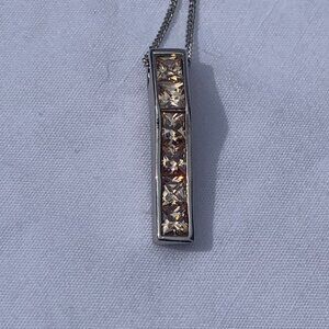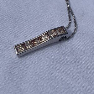 Transform your look with this exquisite sterling silver necklace! This unique and stunning piece of jewelry is suitable for all occasions, elevating any outfit with a touch of sophistication. Don't miss out on the chance to shine with the dazzling cubic zirconia stones. Designed in a princess length, this necklace sits gracefully on the collarbone, making it a versatile accessory that complements any style. Order yours now and add a sparkling finishing touch to any ensemble.