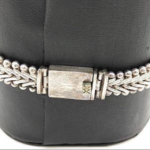 Vintage Sterling Silver Woven Bracelet With Abalone Cabochon MOP Gemstone