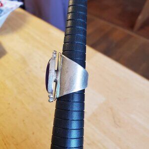 Sterling Silver Wrap Purple Jade Ring - Size 7. This is a very unique western wrap ring. It has a wide band and Sterling marked on the inside. The jade is a beautiful shade of purple. The back of the band is approximately 1/4 inch wide. The stone is approximately 1/4 inch wide and 3/4 inch long.