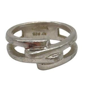 Sterling Silver Wrap Ring Size 7.75 Double Band Modernist Brutalist 925 NF Vintage 5 grams