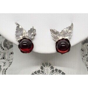 These dainty and stunning two leaf sterling silver, screw back earrings with amber colored cabochons pair up to give the wearer an amber glow. They have been lightly cleaned and polished, to allow you to see the veins of the silver leaves more clearly above the amber colored translucent round stones.