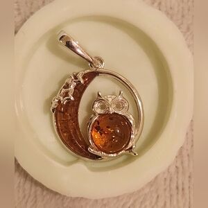 Elegant 925 Sterling Silver pendant featuring an amber owl design.
