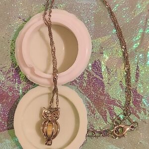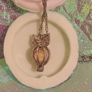 Sterling Silver and Amber Owl Pendant And Owl Holding Pearl Necklace