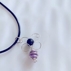 This little bee comes on a 17” black waxed cord with a 2” extender.