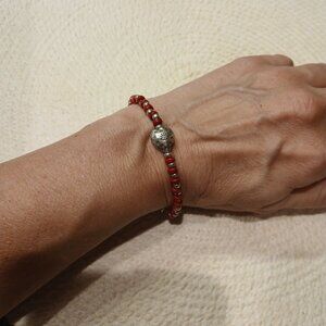 Sterling Silver and Cinnabar Gemstone Bracelet - 7 to 8.25 inches