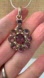 This exquisite necklace showcases a circular floral pendant crafted from sterling silver, adorned with deep purple gemstones that create a stunning starburst effect. The pendant is elegantly suspended from a smooth sterling silver snake chain, enhancing its delicate design. Perfect for adding a touch of sophistication to any ensemble. A purple lover’s dream gift.