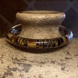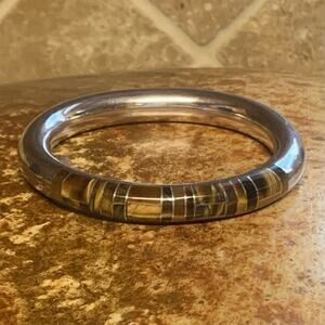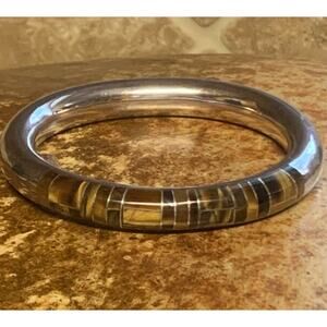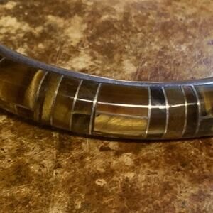 Sterling Silver and Tigers Eye Inlayed Bangle Bracelet Made in Mexico Vintage