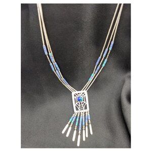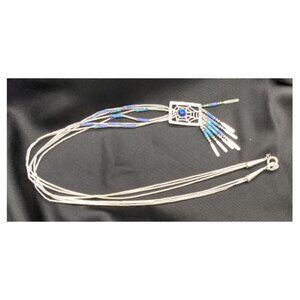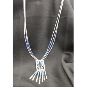 Gorgeous sterling silver and turquoise dreamcatcher necklace. Strands are composed of sterling silver "liquid silver" beads interspersed with multi-colored turquoise.