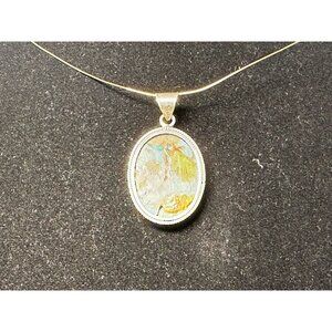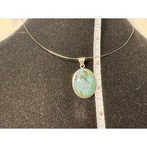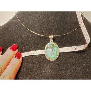 Transform your style with this exquisite turquoise pendant. The oval stone, set in sterling silver, adds a touch of elegance and sophistication to any ensemble. Its subtle yet striking design makes it a versatile piece that complements both casual and formal outfits. Elevate your jewelry collection today.