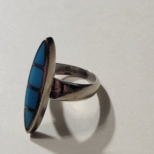 Sterling Silver and Turquoise inlay ring - size 6 1/2