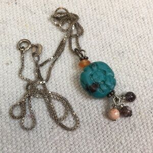 Sterling silver chain with turquoise and gemstone drop pendant - gently worn