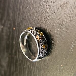 Sterling Silver, copper, and 18k gold mixed metal floral design ring Sz 5