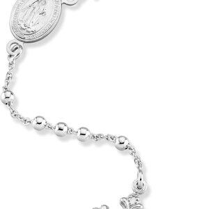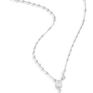 Features: Crafted in Italy, this classic bead station rosary necklace features a Miraculous Medal of the Virgin Mary and a polished cross pendant with a 3-inch drop. The chain is durable cable style with a spring ring clasp for security. It works beautifully as a religious symbol or a stylish layered chain.