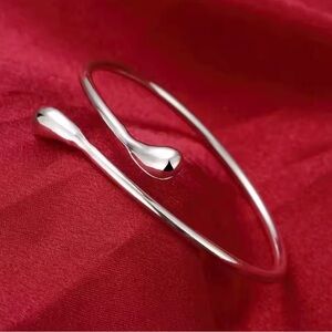 Sterling Silver plated Bracelet Simple Glossy Open Water drop Bangle