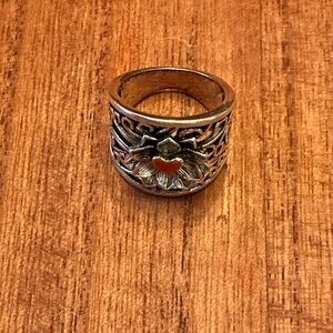 Sterling Silver plated floral Ring, with gold plated heart, size 7 BN