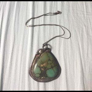 Beautiful large handmade turquoise and sterling silver pendant signed by artist on back. A power piece! Pendant is 2.25"x2.25"