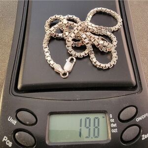 Like new sterling silver 18" 4mm box chain. This chain has a nice weight and feel at 19.8 grams.
