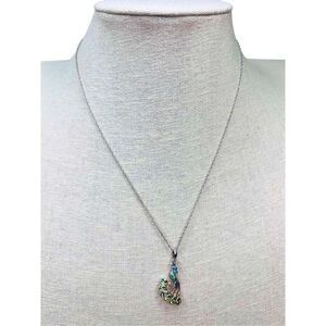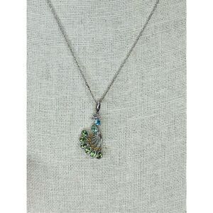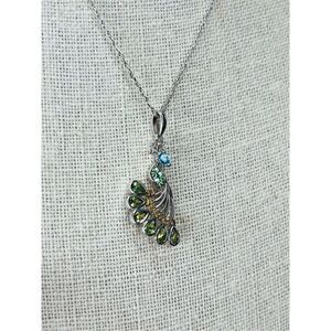 Sterling Silver 925 Peacock Tourmaline Variants CZ 18" Pendant Necklace NWOT. Beautiful shades of tourmaline: greens, Blue, golden yellow and clear cubic zirconia crest. Length of pendant is 1.25 inches high including bail. Chain length is 18". Chain type: Rope chain. Item in New condition. No known defects. Comes in jewelry box in photos.