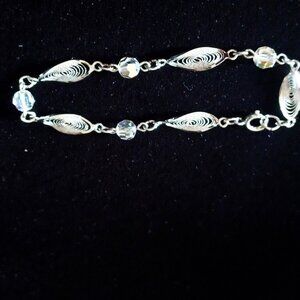 Lovely Sterling Silver Bracelet with Aura Borealis Beads between each silver piece.