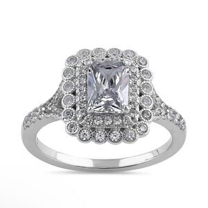 Sterling Silver Chic Emerald Cut Halo Clear CZ Engagement Ring New