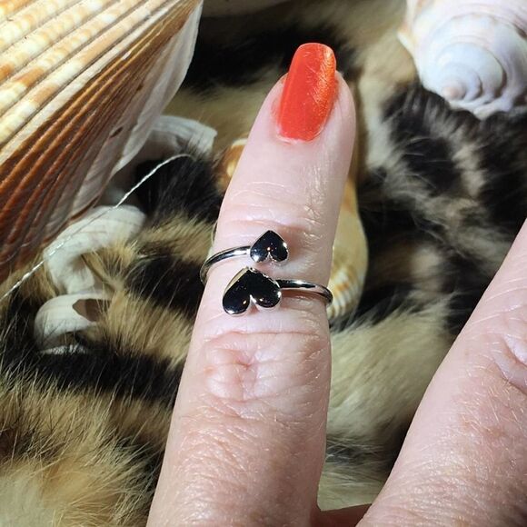 Sterling Silver Double Heart Toe Ring Midi Ring