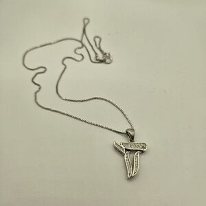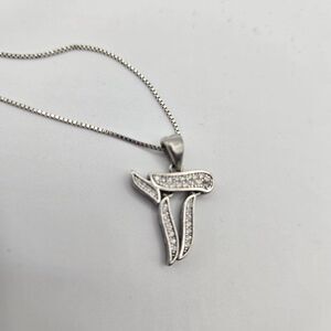 Elegant sterling silver necklace featuring a Jewish Chai charm adorned with sparkling cubic zirconia stones. Comes with an 18-inch chain, perfect for daily wear or special occasions.