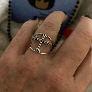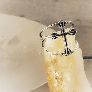Sterling Silver Minimalist Cross Band Ring Adjustable 7-12