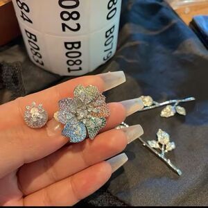 • Design: Flower motif with a dazzling array of colored cubic zirconia stones