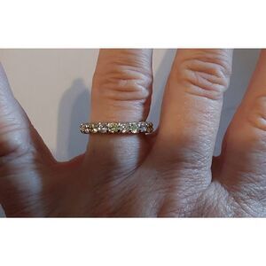 This gorgeous eternity band ring looks great paired up with your other diamond or looks great worn alone.
