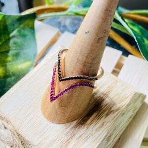 Sterling Silver Rose Gold CZ Ruby & Black 9/10 Adjustable Ring